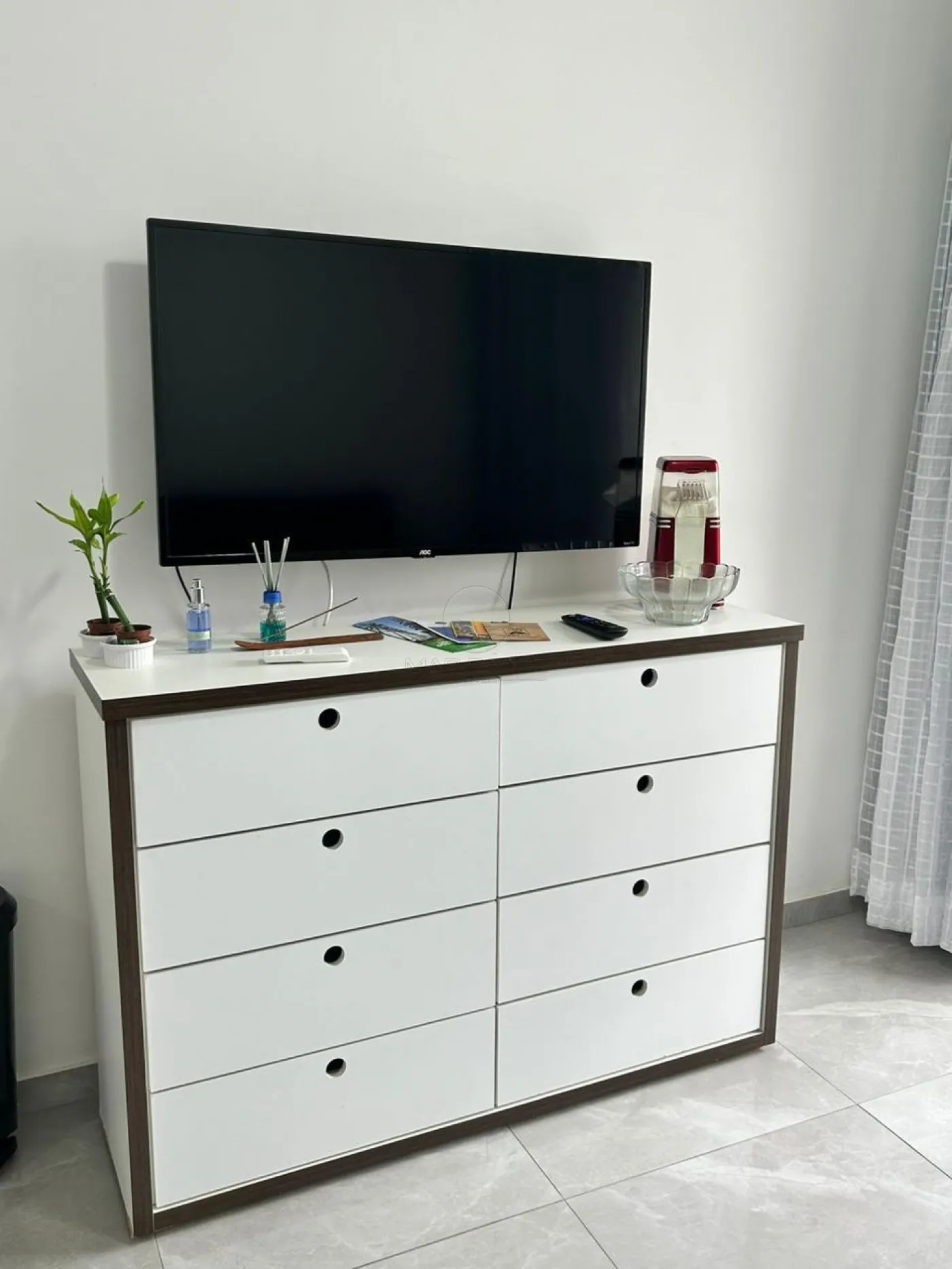 O imóvel possui armários planejados na cozinha e no dormitório, sala equipada com TV Smart, Wi-Fi, cozinha completa e ventilador de teto com controle remoto, garantindo comodidade no dia a dia.