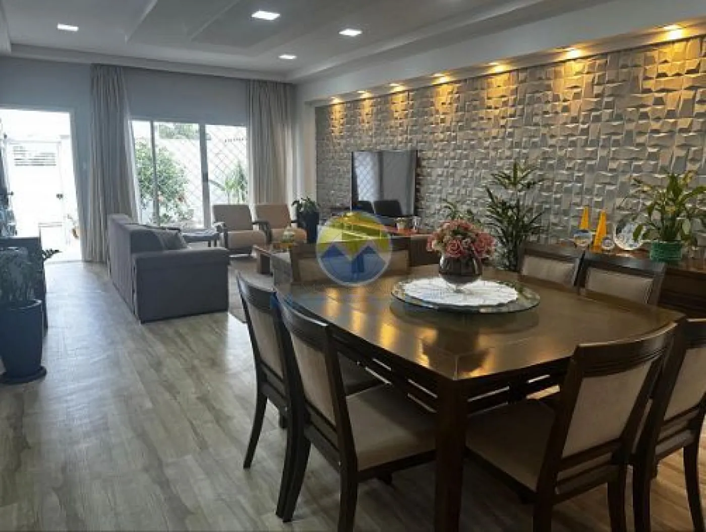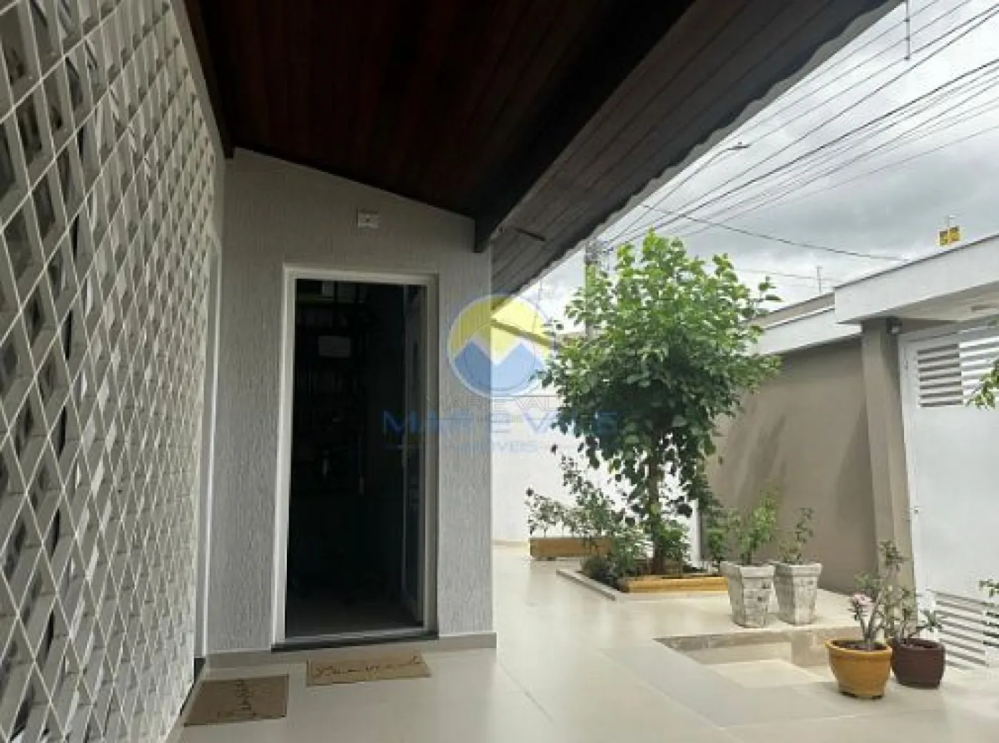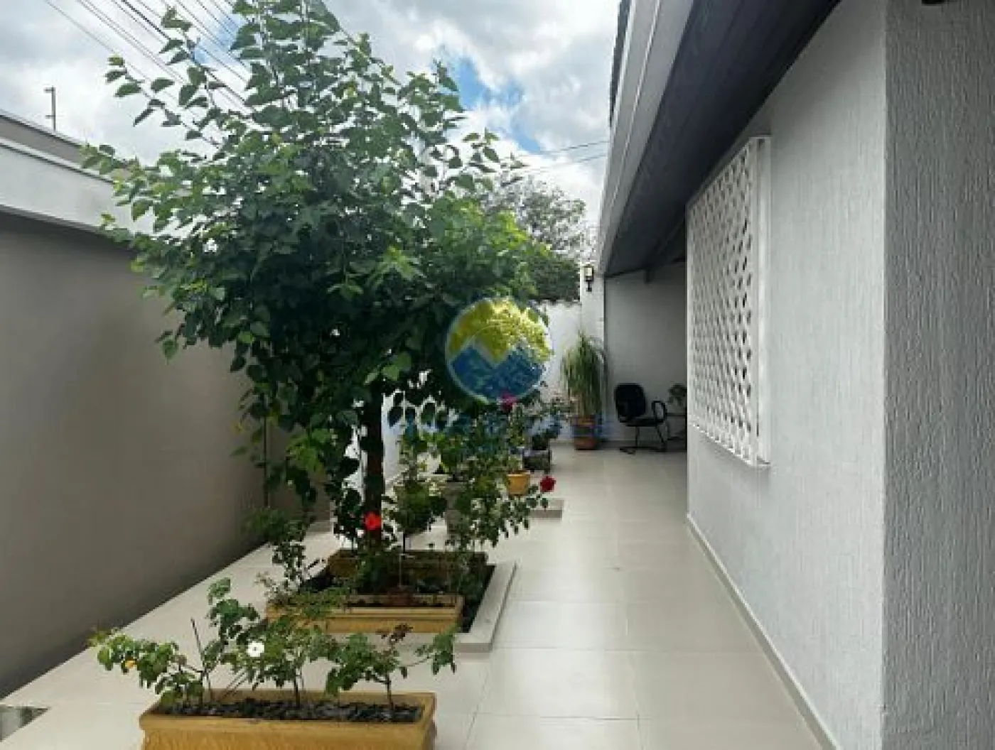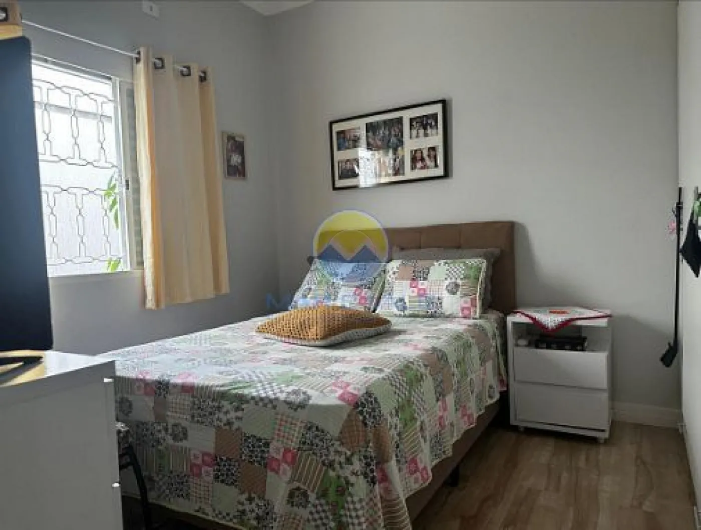 No piso superior, encontram-se dois dormitórios, ambos com ar-condicionado, e um banheiro social. Há ainda amplos espaços de depósito no sótão. A fachada é moderna, com iluminação exclusiva, e o imóvel conta com portão automatizado, cerca elétrica e garagem com capacidade para dois até três veículos.