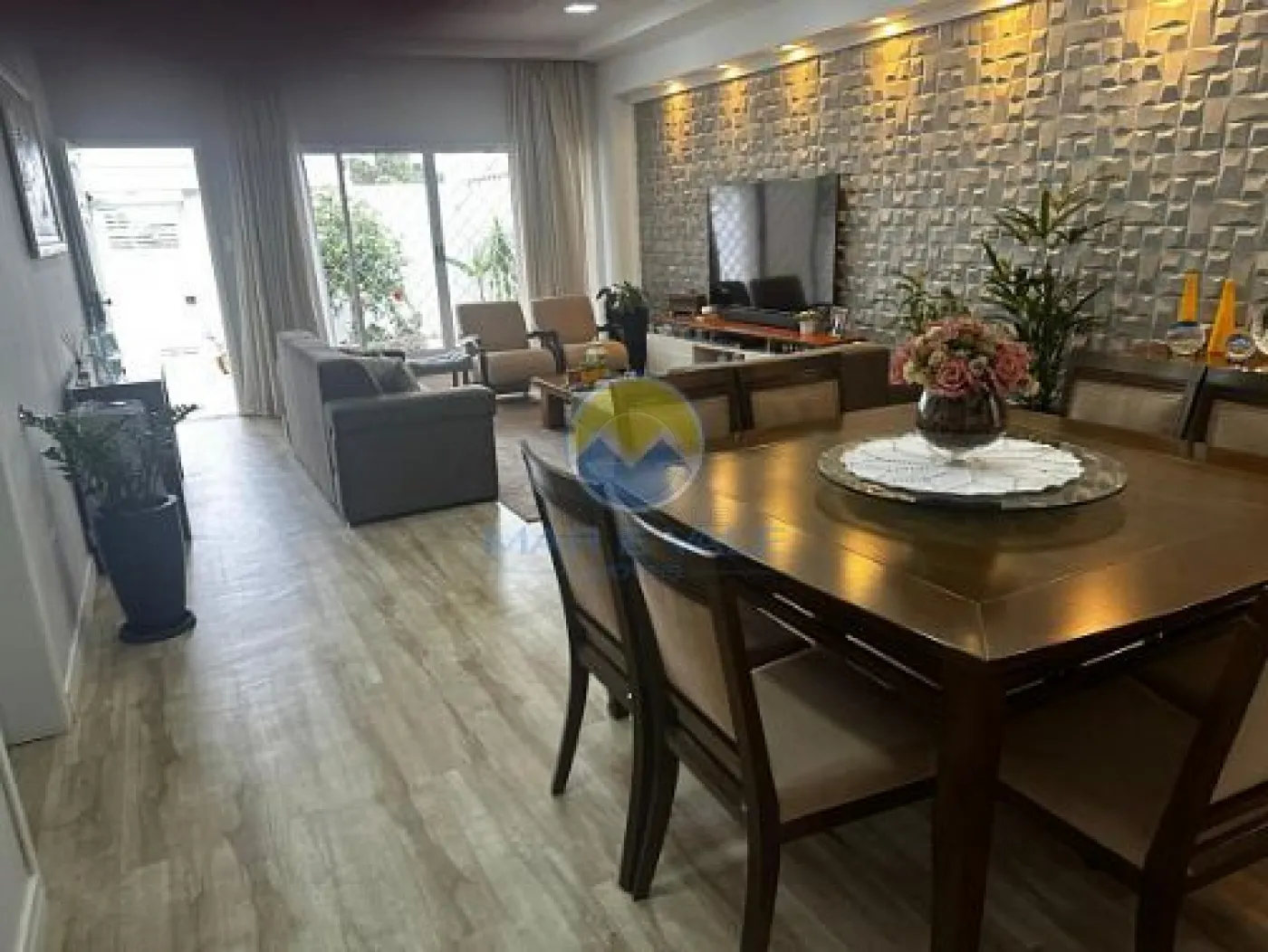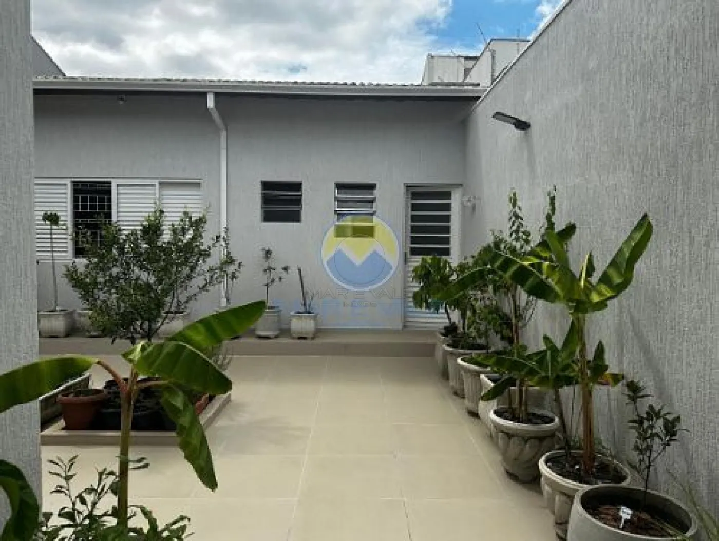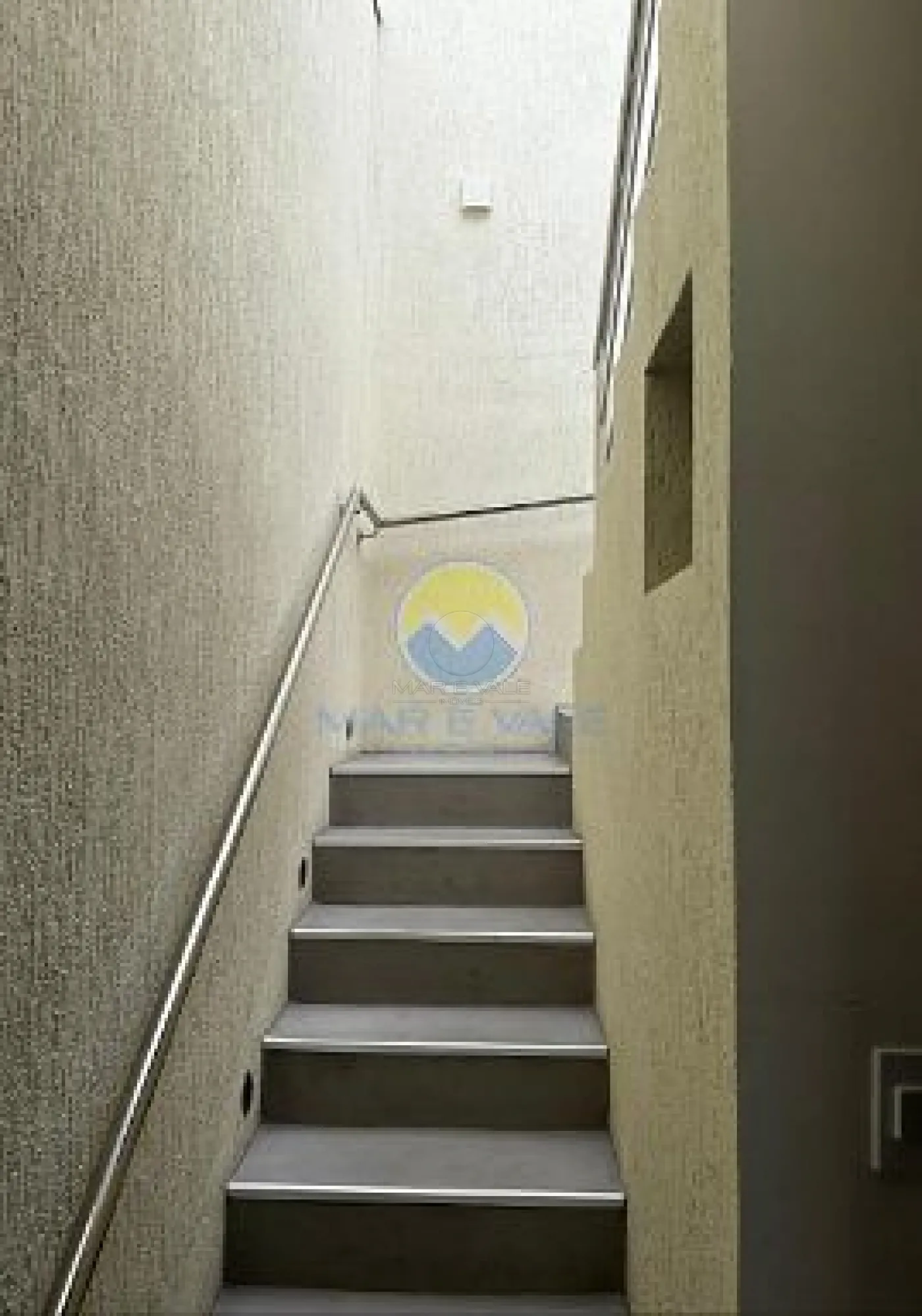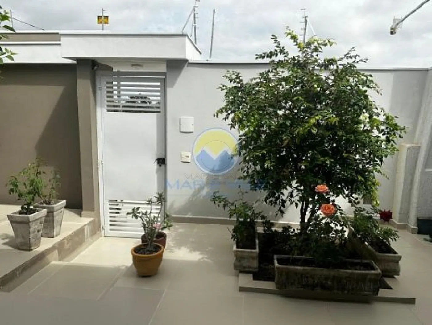 No piso superior, encontram-se dois dormitórios, ambos com ar-condicionado, e um banheiro social. Há ainda amplos espaços de depósito no sótão. A fachada é moderna, com iluminação exclusiva, e o imóvel conta com portão automatizado, cerca elétrica e garagem com capacidade para dois até três veículos.