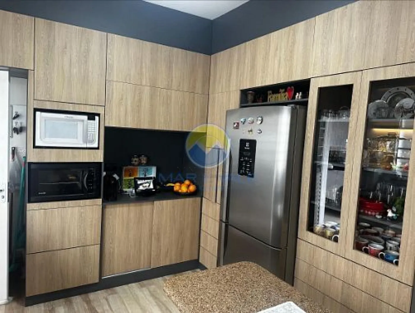 No piso inferior, há uma suíte de casal com ar-condicionado, um banheiro social, um lavabo, além de dois dormitórios com armários sob medida, sendo um deles também com ar-condicionado. A cozinha é equipada com armários planejados novos e integrada a uma sala de jantar e uma sala de estar. O andar conta ainda com um escritório/estúdio feito sob medida, com acesso externo ideal para atender clientes.