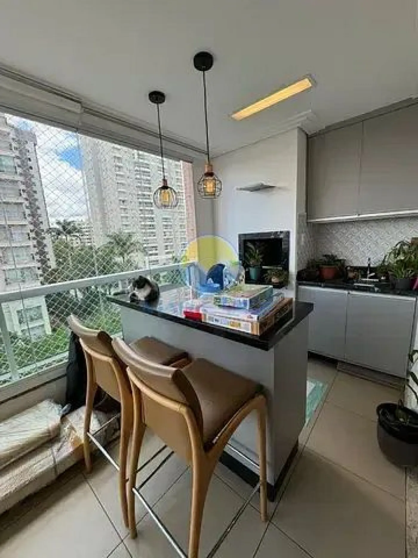 A sala ampla com 2 ambientes é integrada a uma varanda gourmet com churrasqueira, já equipada com fechamento em vidro e tela de proteção, ideal para momentos de lazer com a família. A cozinha planejada possui ótimo espaço e está integrada à área de serviço. O imóvel conta ainda com aquecimento a gás nas torneiras e chuveiros e ar-condicionado.