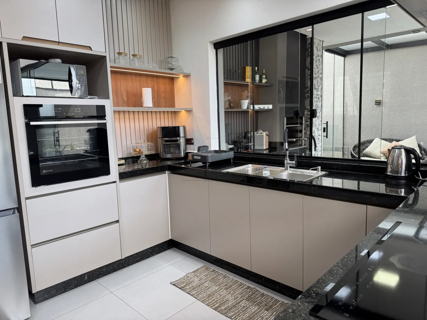 - Cozinha americana integrada à sala de jantar