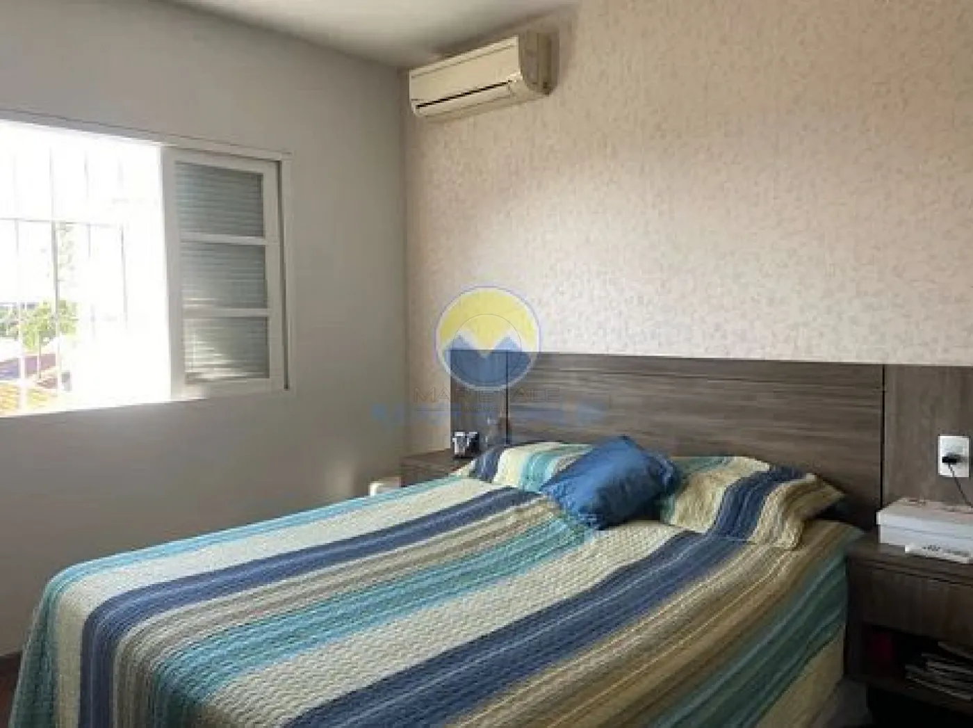 A casa conta com 3 dormitórios, sendo 1 suíte com armário planejado, e dois quartos equipados com ar-condicionado. São 4 banheiros no total, além de uma sala ampla para 2 ambientes e uma cozinha integrada em conceito aberto com armários planejados, conectada à sala e à copa.