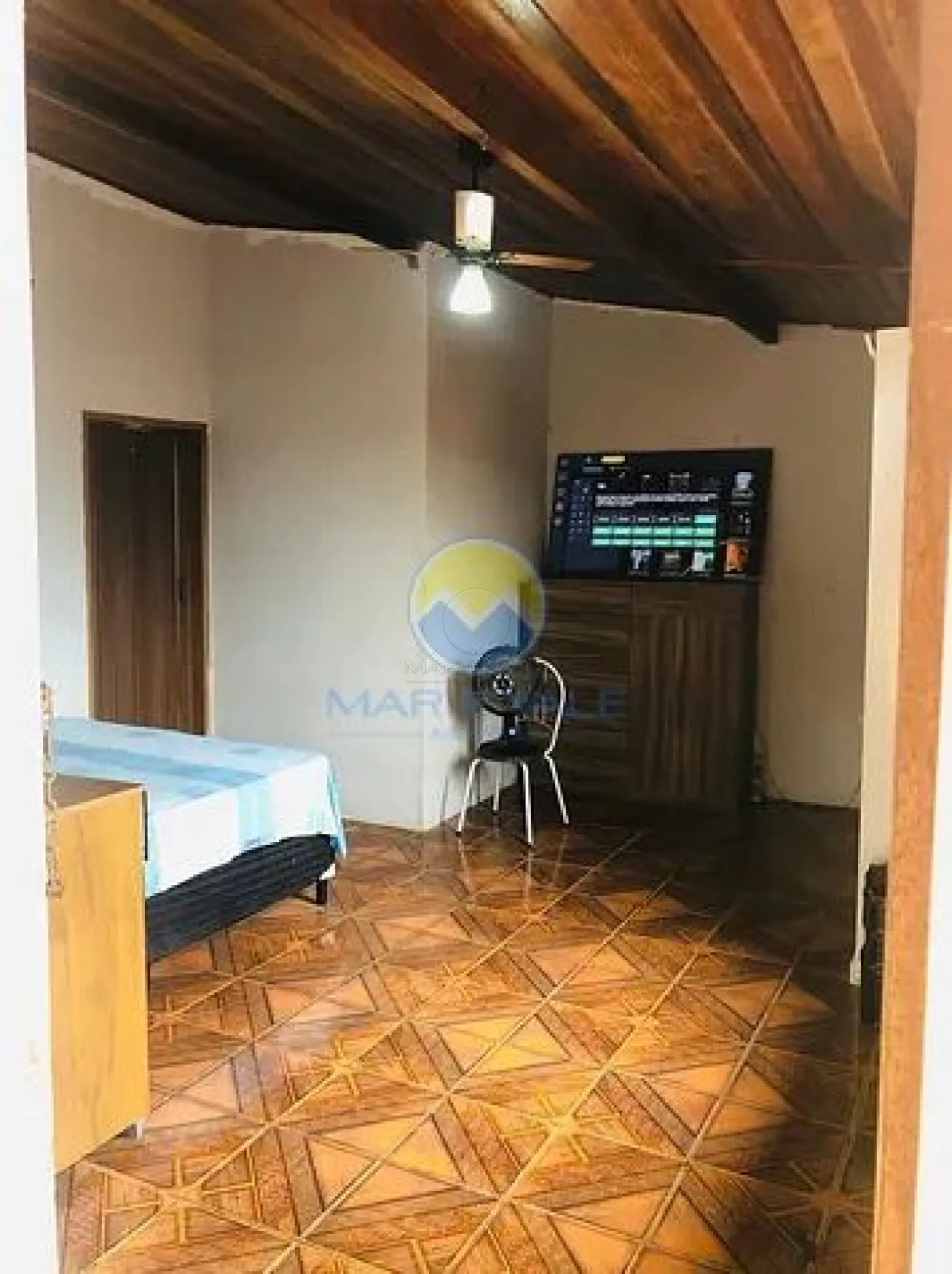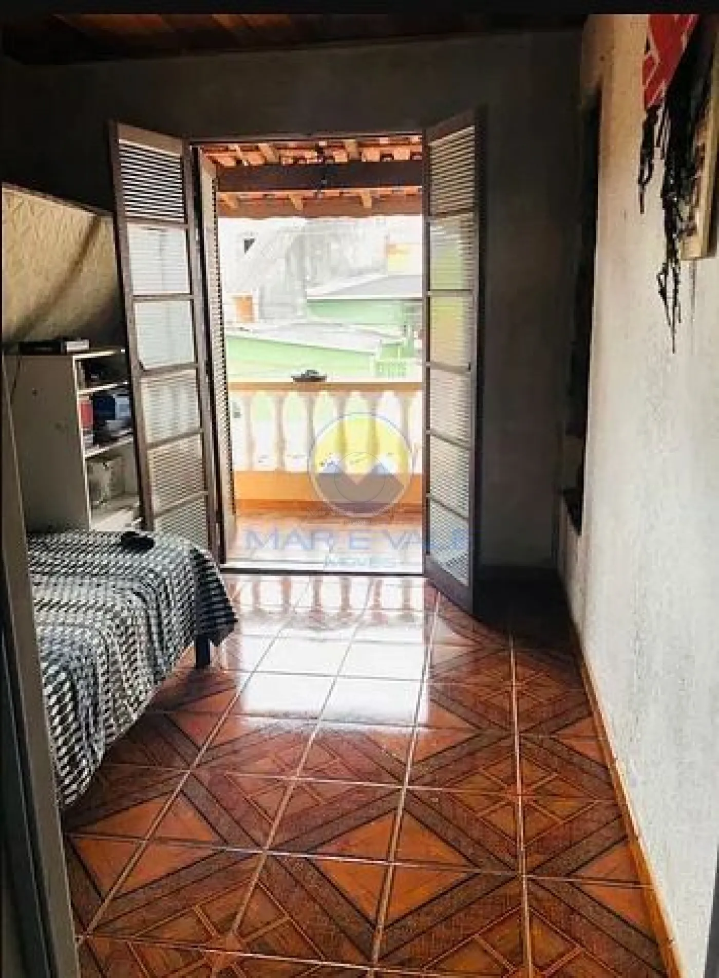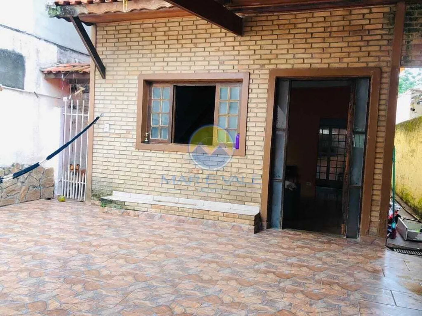 O imóvel possui 2 dormitórios, sendo 1 suíte, e um dos quartos conta com acesso para uma área externa no piso superior. No piso térreo, há uma sala ampla, cozinha funcional, área de serviço com banheiro e um espaço com churrasqueira, ideal para momentos de lazer.