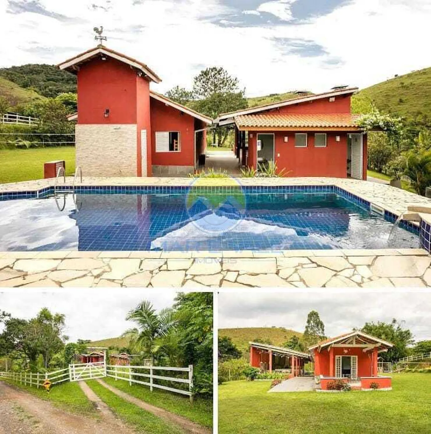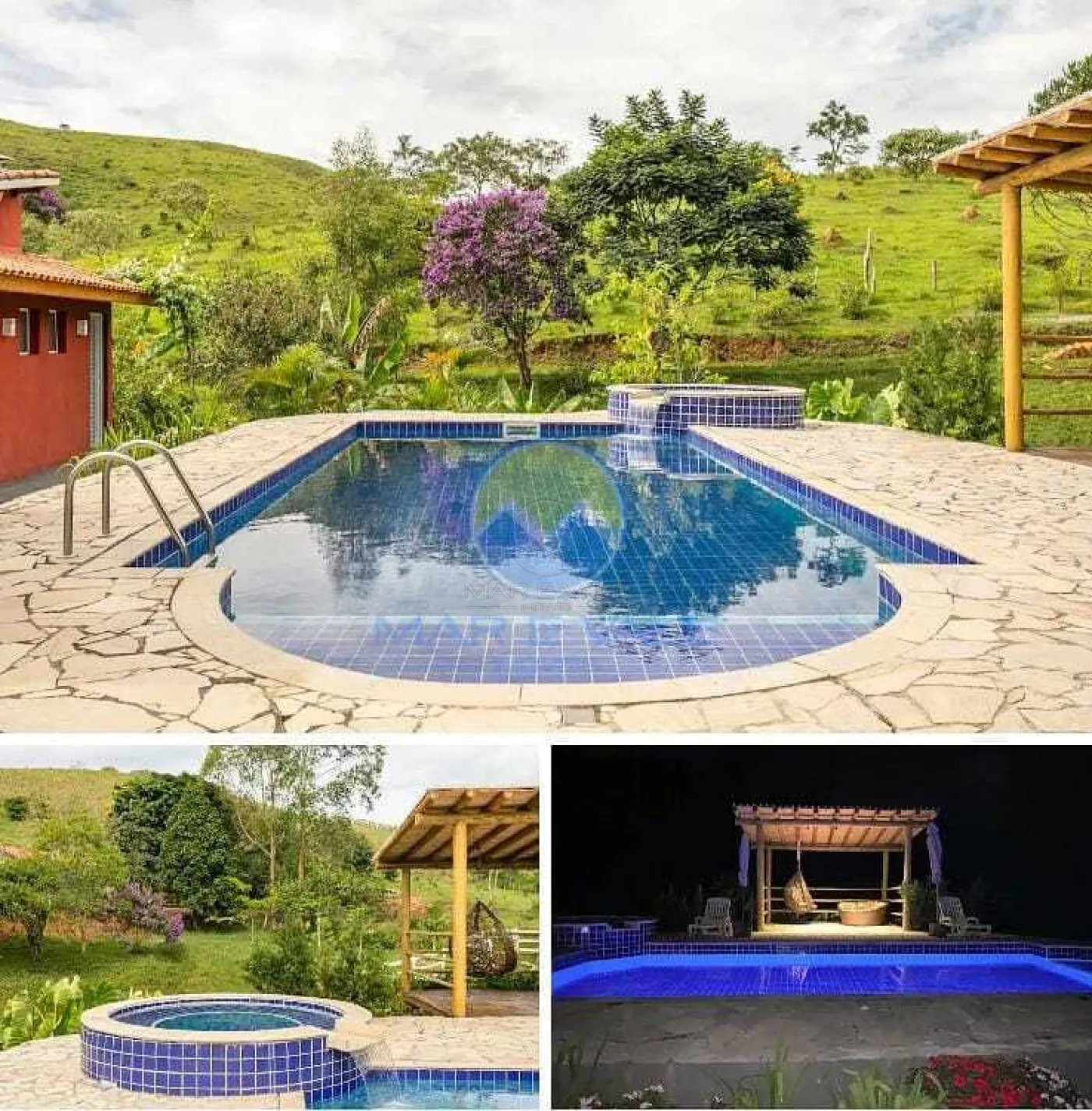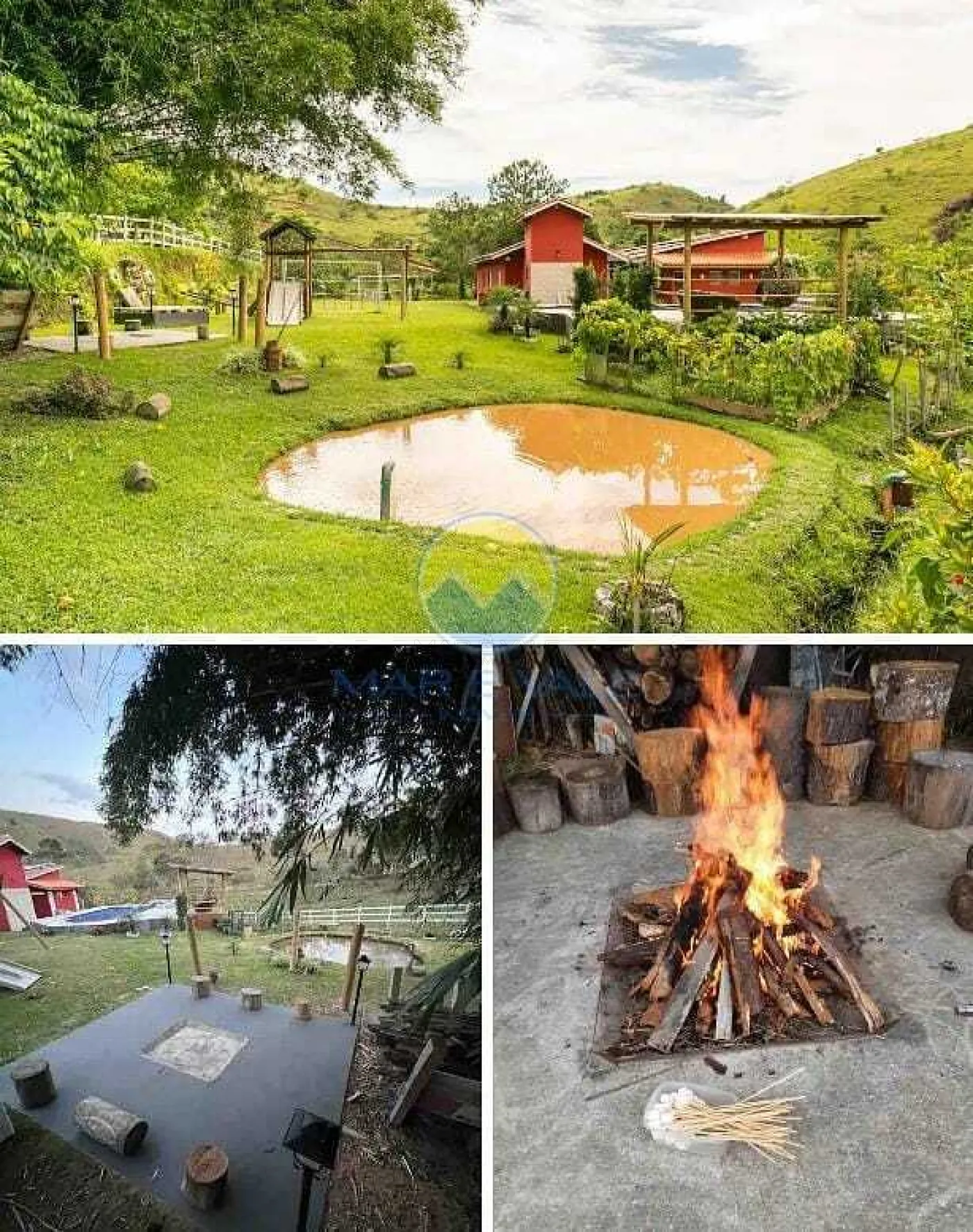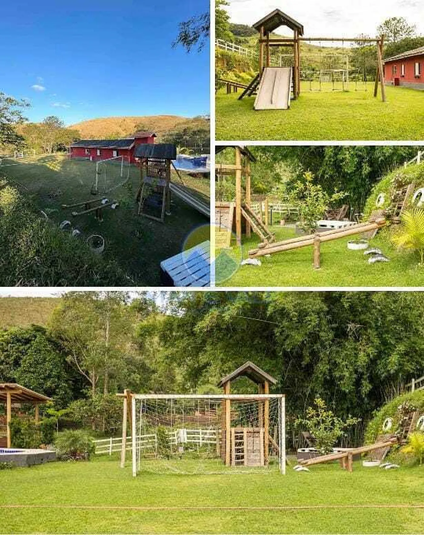 A propriedade oferece diversas opções de lazer, como piscina com hidromassagem e aquecimento solar, pergolado com deck, campo de futebol, lago com água corrente e parquinho infantil. O salão de festas, equipado com churrasqueira, fogão à lenha e forno de pizza, é perfeito para confraternizações. Além disso, há uma área de fogueira, redário com redes e uma horta com árvores frutíferas.
